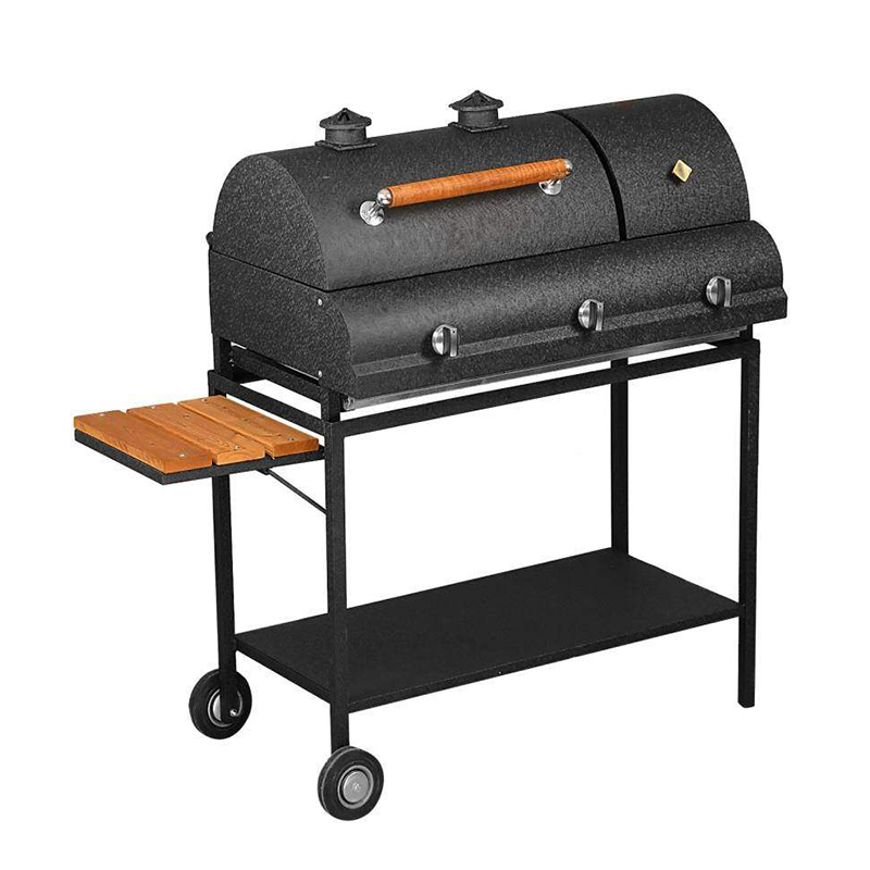 همچنین این باربیکیو دارای سبد زغالی است که طبخ غذا را با زغال را به آسانی فراهم میسازد . و به راحتی این امکان را به شما میدهد که با برداشتن چدن برای طبخ غذای خود از زغال استفاده کنید.جنس بدنه این دستگاه کاربردی از استیل گالوانیزه میباشد که مقاومت در برابر حرارت ,ضربه و ساییدگی دارد. همچنین این محصول دارای چرخ های با کیفتی است ک این امکان را به شما میدهد که این باربیکیو را به راحتی جا به جا کنید . این محصول در ابعاد مختلف موجود میباشد که از طریق سایت میتوانید ان را تهیه و استفاده کنید.