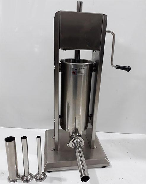 این دستگاه منحصر به فرد به دلیل دارا بودن مقامت مناسب ، ضخامت استاندارد به راحتی قابلیت برقی شدن را دارد . این دستگاه پرکاربرد مناسب استفاده در خطوط تولیدی انواع سوسیس و کالباس ها میباشد . بدنه این سوسیس پر کن بسیار براق و صیقلی است و بر روی چهار پایه سوار می شود . ظرفیت این دستگاه 10 لیتر می باشد البته این محصول در ظرفیت و مدل های دستی و برقی موجود می باشد .
