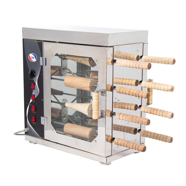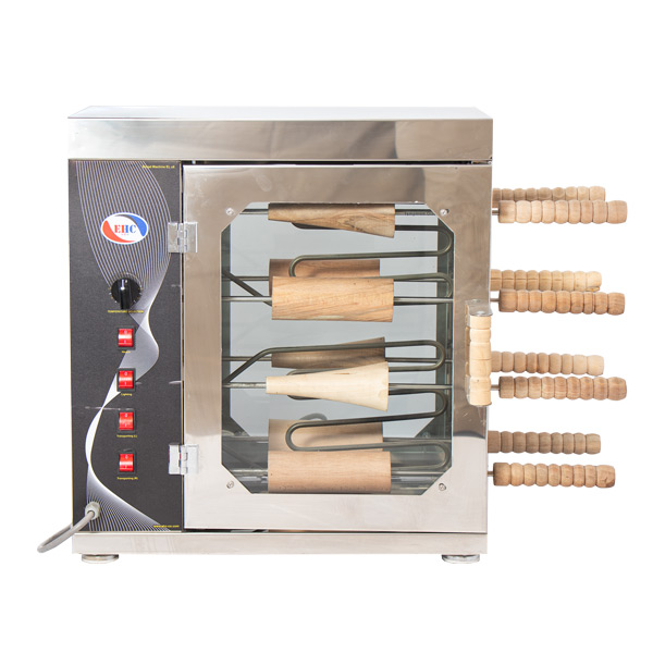 فر چیمینی برقی برند EHC و نان چیمنی در واقع کیک و بستنی بسیار مشهور در پراگ و بوداپست می باشد. که چند سالی در ایران و سایر کشور های جهان جزو مواد خوراکی محبوبی می باشد. دستگاه فر نان چیمنی برند ehc در ابعاد ۵۸۰*۳۵۰*۶۱۰ میلی متر و وزن تقریبی ۲۲ کیلو گرم با قدرت ۳۰۰۰ وات یک دستگاه تمام عیار پخت نان چیمنی است که رقیب سر سخت نمونه ترک و ایتالیایی است ، این دستگاه توانیی طبخ ۸ عدد نان چیمنی برای بستنی را در کسری از دقایق دارد .