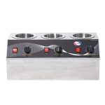 وارمر سس سه خانه برند EHC مدل V.SB 3014 یک دستگاه با کیفیت می باشد . شرکت EHC تنها تولید کننده وارمر های سس شکلاتی و غیر شکلاتی در ایران می باشد . کیفیت فوق العاده بالا و رقابتی با نمونه های مشابه ایتالیایی و فرانسوی . این وارمر ها در سه مدل تک خانه ، دو خانه و سه خانه تولید می شوند . استفاده از این دستگاه علاوه بر سهولت در کار و رعایت بهداشت را نیز به بالاترین حد امکان می رساند .