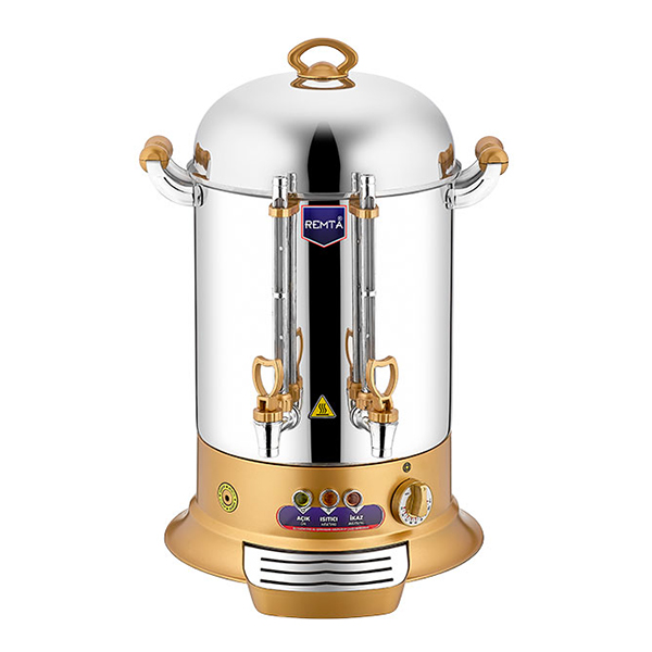 چای ساز برقی 12 لیتری رمتا (REMTA) مدل GR13 ساخت کشور ترکیه می باشد و این شرکت دارای تاییده استاندارد های روز اروپا می باشد . سوخت مصرفی این دستگاه از برق شهری تامین می شود و همچنین قدرت المنت ان 2000 وات می باشد . این چای ساز کاربردی مناسب استفاده در انواع کافی شاپ،کافه فست فود ها،رستوران های مدرن و سنتی،لابی هتل ها،و تمامی اماکن توریستی و تفریحی مورد استفاده قرار می گیرد . وزن ان 4.5 کیلوگرم و ابعاد ان 41x34x52 سانتی متر می باشد که به راحتی قابل نظافت و جا به جایی می باشد . ظرفیت این دستگاه 12 لیتر می باشد و البته این چای ساز در ظرفیت های مختف در دو رنگ استیل و طلایی موجود می باشد .