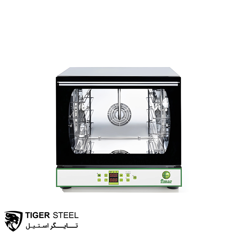 کانوکشن برقی FIMAR مدل CMP423D. این فر جزو فر های برقی نانوایی و شیرینی پزی میباشد که محصول شرکت فیمار از کشور ایتالیا است. این فر ها یعنی فر های کانوکشن یا به اصطلاح فن دار با استفاده از فن تعبیه شده در داخلش باعث پخش یکنواخت و یکدست گرما در فر میشود تا فرایند پخت سریع تر شود. جنس بدنه این محصول از استنلس استیل میباشد که کیفیت و دوام بسیار بالایی دارد. کمپانی فیمار برای دیدن داخل دستگاه هنگام پخت از لامپ هالوژن استفاده کرده که به شدت با کیفیت و با دوام است. ظرفیت داخلی این فر به اندازه ای هست که شما میتوانید 4 عدد سینی با ابعاد 35.5 در 32.5 را همزمان برای پخت درون فر قرار دهبد. این فر به ابعاد 45 * 34 و به عمق 7.5 سانتی متر و دارای وزن 28 کیلوگرم میباشد.