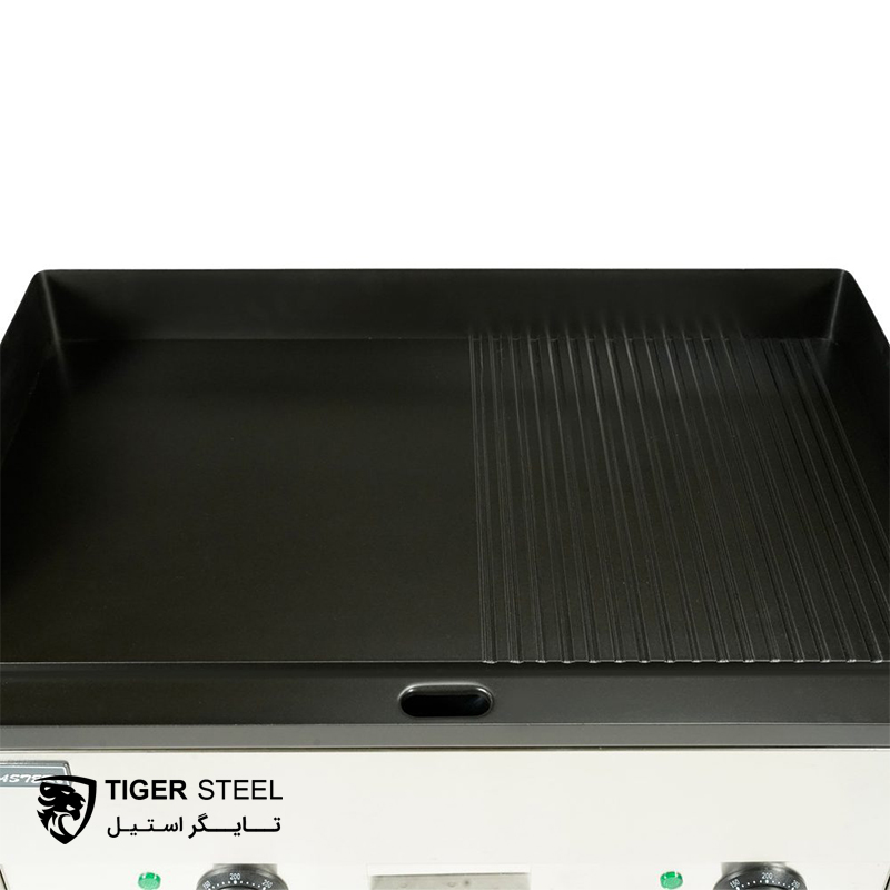 صفحه گریل این دستگاه دارای دو بخش صاف و شیار دار می باشد. بخش شیار دار آن به پخت بهتر انواع گوشت و مرغ کمک می کند. این صفحه از حنس تفلون ضد خش فوق ضخیم تهیه می شود. این تفلون علاوه بر داشتن مقاومت حرارتی بالا ( تا 260 درجه سانتی گراد ) ، دارای ویژگی هایی از جمله مقاومت در برابر عوامل شیمیایی ، چگالی بالا ، خواص دی الکتریکی و … می باشد. ویزگی های خاص این تفلون ، استفاده از آن در ساخت صفحه گریل این دستگاه و دیگر ظروف آشپزی را توجیه می کند.