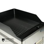صفحه گریل این مدل از نوع شیار دار می باشد. وجود شیار ها باعث پخت بهتر گوشت و مرغ می شود. این صفحه از جنس تفلون فوق ضخیم و ضد خش ساخته می شود. این تفلون علاوه بر داشتن مقاومت حرارتی بالا ( تا 260 درجه سانتی گراد ) ، دارای ویژگی هایی از جمله مقاومت در برابر عوامل شیمیایی ، چگالی بالا ، خواص دی الکتریکی و … می باشد. ویزگی های خاص این تفلون ، استفاده از آن در ساخت صفحه گریل این دستگاه و دیگر ظروف آشپزی را توجیه می کند.