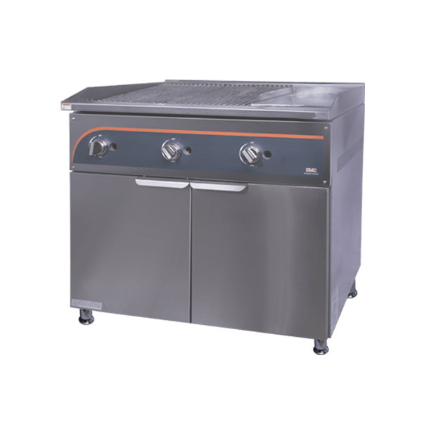 گریل مبله 120 سانتی متری (روغنی،زغالی،ترکیبی) مدل KMC یکی از باکیفیت ترین محصولات شرکت KMC می باشد . این دستگاه در سایز های 120،90،60 قابل سفارش می باشد . که سایز 120 ان بزرگ ترین است و همچنین این دستگاه در ابعاد دلخواه قابل تولید می باشد . گریل مبله یک دستگاه بسیار کاربردی می باشد و جنس بدنه این گریل بسیار مقاوم می باشد که جنس ان تمام استیل است . حرارت این گریل قابل تنظیم می باشد و این دستگاه دارای ولوم های نسوز با کیفیت می باشد .  در قسمت صاف این گریل چدن های رویه از بهترین نوع و با ضخامت بسیار مناسب می باشد . طراحی این گریل مبله بسیار کاربردی است زیرا در قسمت پایینی این گریل یک کابینت جهت جایگذاری وسایل اشپزی و همچنین یک یخچال بسیار کوچک جهت نگهداری مواد غذایی تعبیه شده است .