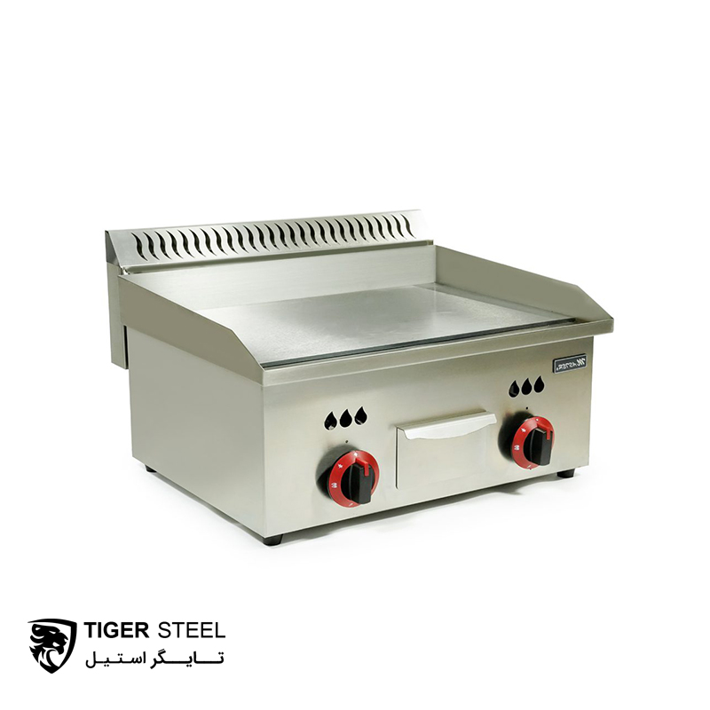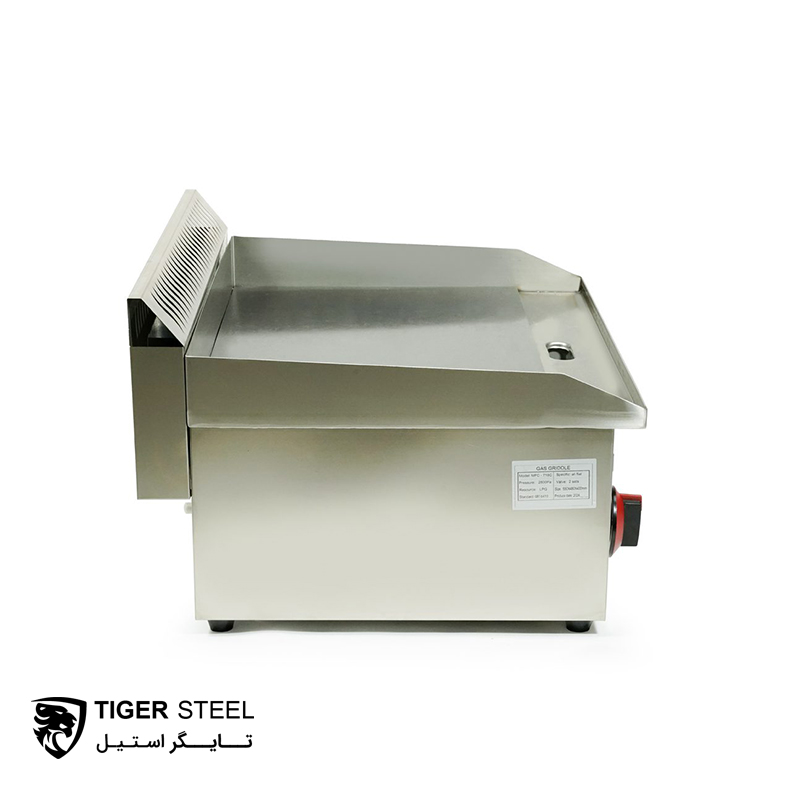 صفحه گریل این محصول ، از جنس استیل 6 میلی متر سنگین تهیه می شود. به دلیل استفاده از گاز به جای برق ، صفحه گریل آن به جای تفلون از استیل 304 استفاده می شود. در قسمت ” جنس بدنه ” ویژگی های استیل 304 را به صورت مختصر توضیح دادیم. برای کسب اطلاعات بیشتر درباره استیل 304 بهداشتی روی لینک کلیک کنید.