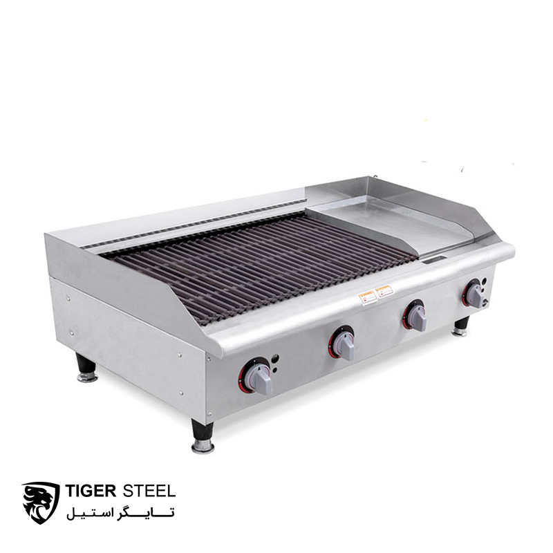 این دستگاه با استفاده از شعلههای گازی به سرعت دمای مورد نظر را میسازد و به شما این امکان را میدهد که بهطور مؤثر و سریع غذاها را بپزید. گریل گازی ترکیبی 120 سانتی مدل GT-90C-30 میتواند در محیطهای شلوغ مانند رستورانها و فست فودها که به سرعت و عملکرد بالا نیاز دارند، کارایی عالی از خود نشان دهد.